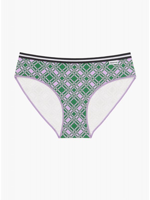 Женские трусы слипы выполнены из смеси бамбука и хлопка, что является их главным преимуществом. Ткань обеспечивает нежное прикосновение к коже и максимальную свободу движений. Модель имеет мягкую резинку, обеспечивающую комфортную среднюю посадку и плотное прилегание. Слипы украшены геометрическим принтом.