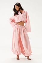 Кардиган прямого кроя, выполнен из натурального полотна рами. Вырез горловины V-образный. Застёжка центральная на завязки. Рукав широкий, втачной, спущен. Длина боковых разрезов 67 см. Длина рукава от линии горловины 76 см. Длина спинки 130 см.