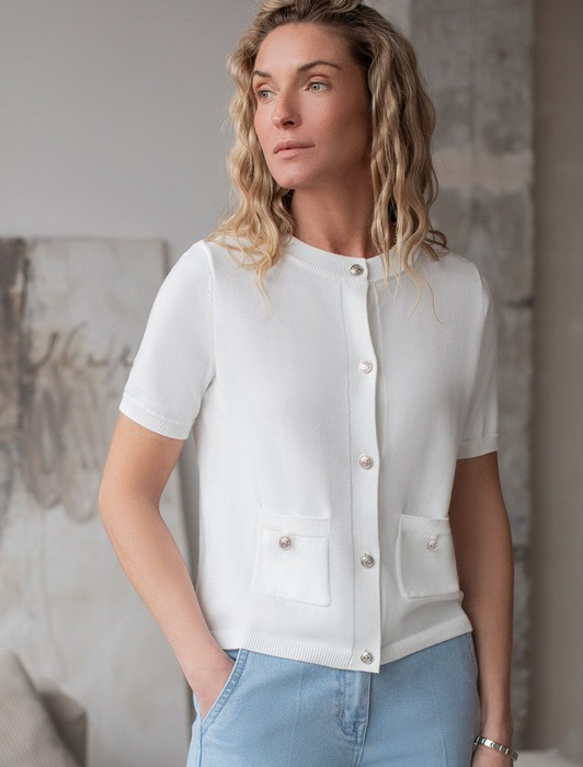 Совместные покупки Сургут Женская одежда Футболки — Кардиган c коротким рукавом вязаный из хлопка с акрилом