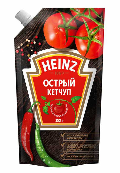 Кетчуп Heinz острый станет отличной приправой к самым разным блюдам. Известный бренд производит вкусные соусы по оригинальной рецептуре из натуральных продуктов. Такой кетчуп пригодится дома (в качестве добавки ко вторым блюдам, мясу, птице и т. д.), на пикнике или во время путешествия. Соус можно использовать в качестве отдельной добавке к готовым блюдам или же применять для того, чтобы придать им интересный пряный вкус во время приготовления (как альтернативу томатной пасте). Острый кетчуп оценят гурманы, которые любят добавлять его к деликатесам. Густой томатный соус удобно использовать: в него можно макать картофель фри, намазывать мясо или смешивать с другими соусами, например, с майонезом. Уже 150 лет Heinz неизменно радует потребителей высоким качеством и восхитительным вкусом своих продуктов.