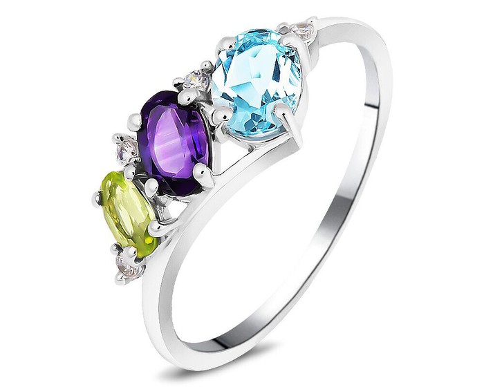 Кольцо, арт.657736 Серебро Серебро 925, р. 19, 1,89 гр., аметист , перидот , топаз