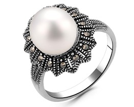 Кольцо, марказит , перламутр, SL-AGA64