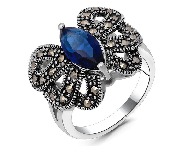 Кольцо, арт.656422 Серебро Серебро 875, р. 17, 5,71 гр., марказит , синт.сапфир
