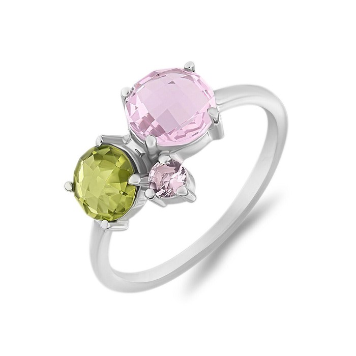 Кольцо, арт.654251 Серебро Серебро 925, р. 17, 2,13 гр., морганит , перидот