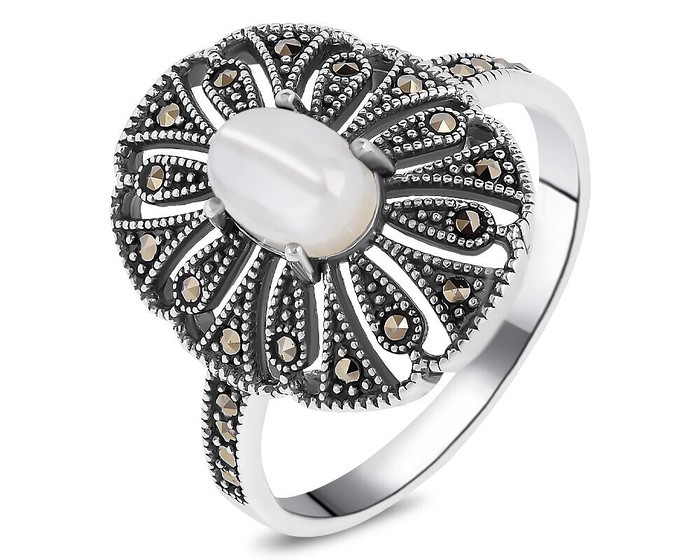 Кольцо, арт.658219 Серебро Серебро 925, р. 17.5, 3,18 гр., перламутр , марказит