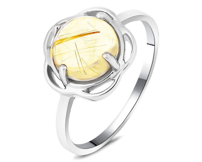 Кольцо, рутиловый кварц золотой, Фигаро