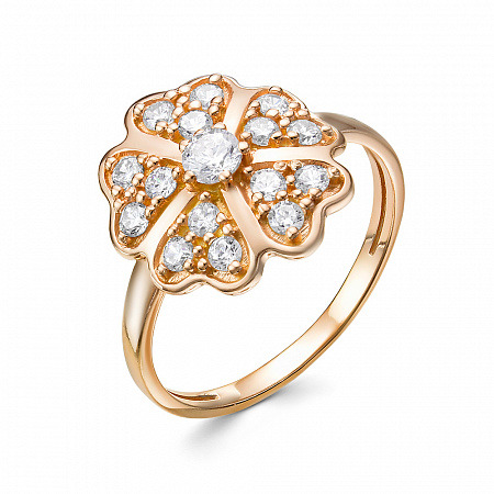Кольцо с фианитом позолоченное серебро 925*