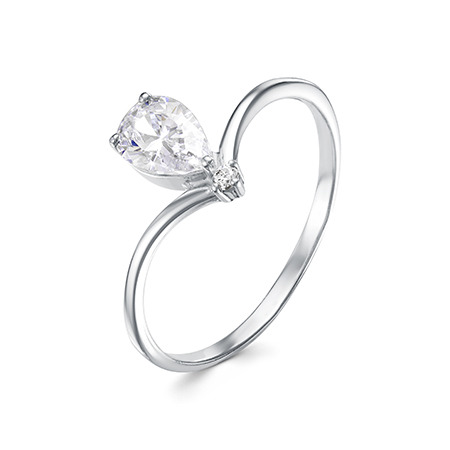 Кольцо с фианитом родированное серебро 925*