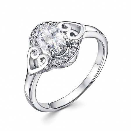 Кольцо с фианитом родированное серебро 925*
