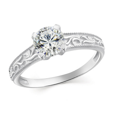 Кольцо с фианитом родированное серебро 925*