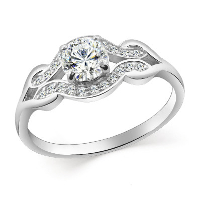Кольцо с фианитом родированное серебро 925*