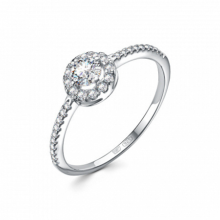 Кольцо с фианитом родированное серебро 925*