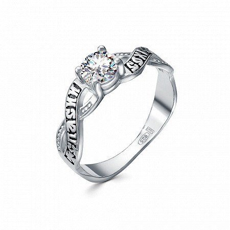 Кольцо с фианитом выборочное чернение серебро 925*