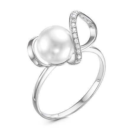 Кольцо с иск.жемчугом родированное серебро 925*