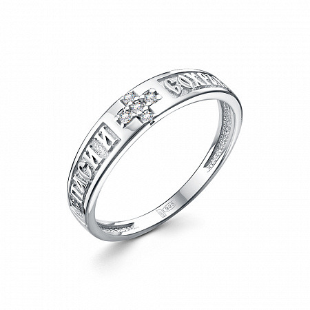 Кольцо (Спаси и Сохрани) из серебра родированное литье с фианитом