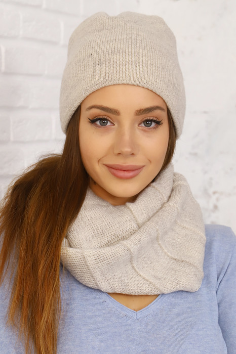 Великолепный теплый вязаный комплект. Подкладка шапки - флис. Согреет Вас в любую непогоду.  Шарф-снуд, в красивый рубчик приятно прилегает к шее. Его можно носить как поверх верхней одежды, так и надеть внутрь.