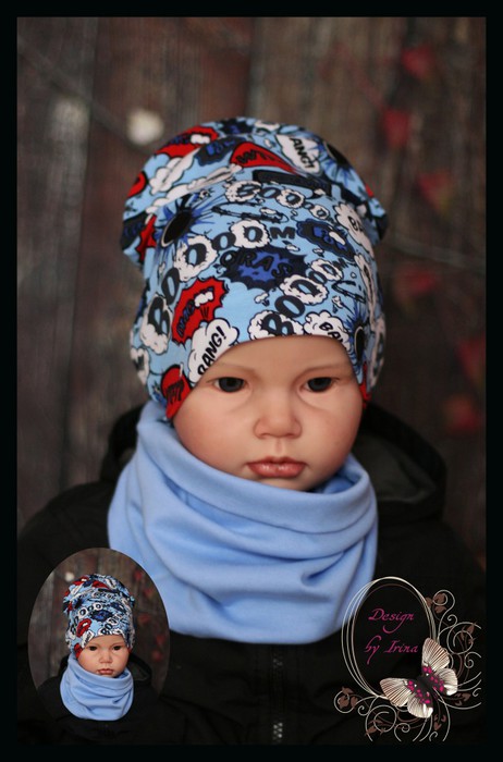 Совместные покупки Сургут Детские аксессуары Шапки — Комплект для мальчика хлопковый «Booom» (голуб.)