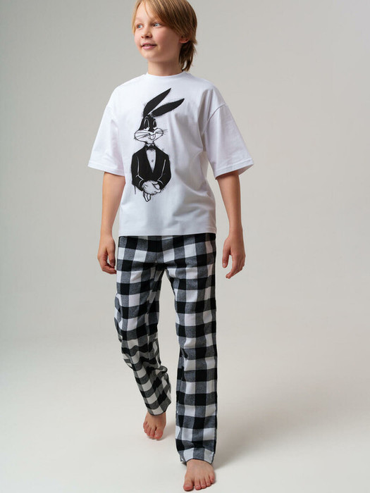 Стильная подростковая пижама для мальчика от PlayToday — удобный комплект из хлопковой футболки и фланелевых брюк в клетку. Идеальное решение для сна, домашнего отдыха и пижамных вечеринок.