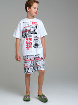 Комплект для мальчика: футболка в камуфляжном стиле и однотонные бриджи. Бриджи имеют удобные карманы с двух сторон. Расцветки: синяя и зеленая.