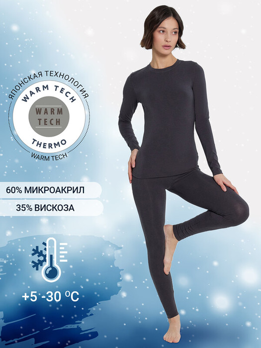 Женский комплект "термо", включающий джемпер и легинсы. Джемпер прилегающий, с длинным рукавами и классическим круглым вырезом. Легинсы плотно облегают ноги, отличаются плоскими швами, высокой линией талии и эластичной резиной в поясе. В состав полотна, созданного по японской технологии WARM TECH, входит микроакрил, который благодаря своей толщине (меньше волоса человека в 10 раз), создает своеобразные воздушные карманы между нитями – именно за счет этого свойства легинсы такие теплые. Технология производства ткани позволяет термобелью выдерживать экстремальные температуры до -30 градусов Цельсия. Ультратонкое и теплое. Комфортно облегает и надежно защищает от низких температур и пронизывающего ветра. Лучший выбор для девушек, которые увлекаются альпинизмом, зимними видами спорта и активным отдыхом. Контролируйте зиму!