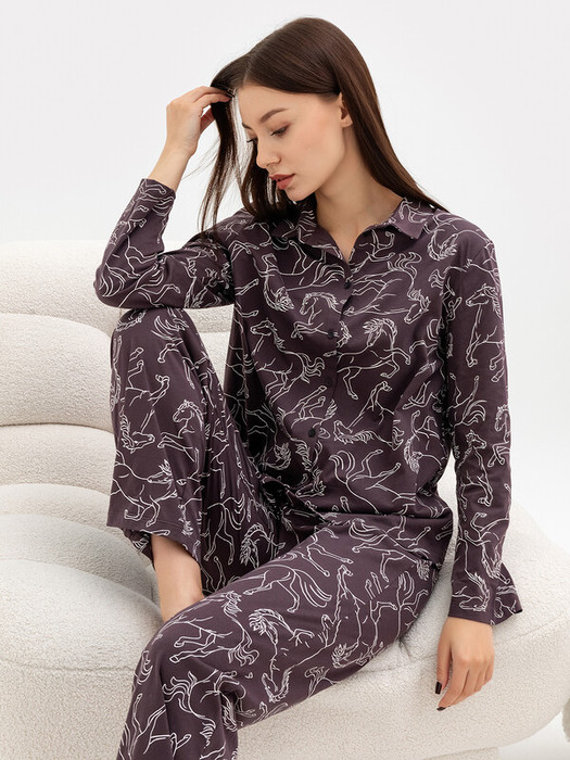 Комплект состоит из блузки и брюк, блузка на базе 592368. Силуэт блузки прямой и свободный, рукава длинные втачные, линия плеча немного спущена. Блуза с центральной застежкой на пуговицы, воротник стояче-отложной.Низ изделия и низ рукавов застрочен швом в подгибку.