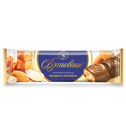 Вкуснейший молочный шоколад с тающей кремовой начинкой с тертым миндалем и кусочками карамели.