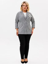 Костюм женский. В комплект входит футболка с рукавом 3/4 и бриджи ниже колен, без карманов. По переду асимметрия из двух видов ткани.