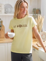 Костюм женский из кулирного полотна состоит из кофты и брюк. Кофта прямая, рукава-реглан, низ на манжете, горловина обработана обтачкой, низ изделия на поясе, на полочке принт. Брюки прямые, верх на поясе с резинкой, низ на манжете, в боковых швах внутренние карманы.