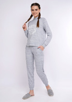 Комплект состоит из футболки и бриджей. Бриджи на резинке, средней длины, с карманами, с лампасами контрастного цвета вдоль боковых швов. Футболка прямого силуэта, длиной до середины бедра. Рукав цельнокроеный короткий, на манжете. На полочке, из отделочного полотна, расположены симметричные кокетки, из основного полотна, и лампасы контрастного цвета. Горловина и карманы на бриджах обработаны бейкой из основного полотна.