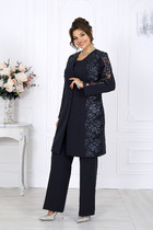 Костюм женский с брюками. Толстовка свободной формы со спущенными плечами и длинными рукавами. На груди принт в виде надписи. Низ притачной, двухцветный, нижняя часть чуть длиннее, верхняя с надрезами. Брюки полуприлегающего силуэта с карманами. Низ на манжетах, пояс на резинке.