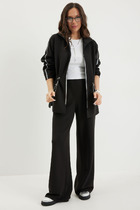 Этот стильный женский костюм из двух предметов сочетает современный дизайн с элементами уличной моды. Комплект включает приталенный жакет и умерено широкие брюки, выполненные из джинса, что придает образу уникальный и уверенный характер.