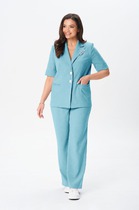 Лаконичный крой, модные цвета и идеальная посадка делают этот комплект-тройку актуальным во все времена! Жакет полуприлегающего силуэта с центральной застежкой на одну пробивную петлю и пуговицу. Перед с рельефными швами, с горизонтальными карманами с клапаном и двумя обтачками. Спинка со средним швом и рельефными швами, выходящими от линии проймы. Рукава втачные, двухшовные, низ декорирован пришивной пуговицей. Воротник – втачная стойка. Жакет на подкладке и с плечевыми накладками. Блуза полуприлегающего силуэта с фигурной линией низа. Перед с нагрудными вытачками. Застежка по центру горловины спинки на навесную петлю и пуговицу. Рукава – крылышко со сборкой по окату. Юбка зауженная к низу, на притачном поясе, застегивающемся на одну петлю и пуговицу. Застежка в среднем шве заднего полотнища на потайную тесьму-молнию. Переднее полотнище с талиевыми вытачками. Заднее полотнище с талиевыми вытачками и средним швом, заканчивающимся шлицей. Юбка на подкладке.