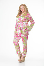 Лаконичный крой, модные цвета и идеальная посадка делают этот комплект-тройку актуальным во все времена! Жакет полуприлегающего силуэта с центральной застежкой на одну пробивную петлю и пуговицу. Перед с рельефными швами, с горизонтальными карманами с клапаном и двумя обтачками. Спинка со средним швом и рельефными швами, выходящими от линии проймы. Рукава втачные, двухшовные, низ декорирован пришивной пуговицей. Воротник – втачная стойка. Жакет на подкладке и с плечевыми накладками. Блуза полуприлегающего силуэта с фигурной линией низа. Перед с нагрудными вытачками. Застежка по центру горловины спинки на навесную петлю и пуговицу. Рукава – крылышко со сборкой по окату. Юбка зауженная к низу, на притачном поясе, застегивающемся на одну петлю и пуговицу. Застежка в среднем шве заднего полотнища на потайную тесьму-молнию. Переднее полотнище с талиевыми вытачками. Заднее полотнище с талиевыми вытачками и средним швом, заканчивающимся шлицей. Юбка на подкладке.