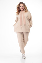 Брюки женские длинные, со сгибом, на притачном поясе по боковым на резинке, застежка типа «гульфик» обработана по переду на тесьму-молнию и петлю и пуговицу по поясу. Передние части с имитацией боковых косых карманов. Задние части с талевыми выточками.