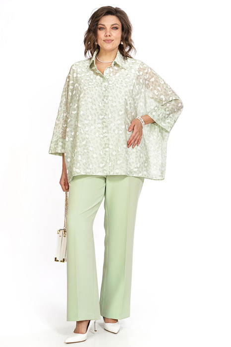 Блуза полуприлегающего силуэта, с фигурной линией низа. Перед с нагрудными выточками.