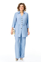 Жакет свободного силуэта, двухбортный со спущенным плечом. Перед и спинка на кокетках. По переду в кокетках декоративные клапаны. Рукав длинный на притачной манжете.