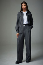 Шорты-бермуды женские, свободного силуэта, на поясе со шлевками. Застежка на молнию и пуговицу. По переду заложены складки. По бокам действующие угловые карманы.