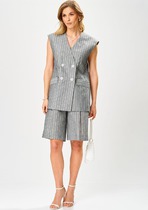 Брюки прямого кроя с высокой посадкой на притачном поясе, застежка на тесьму-молнию гарантирует удобство при носке. Удобные боковые карманы повышают функциональность изделия. Модель выполнена из качественного тканевого материала, который хорошо держит форму и подходит для деловых встреч, официальных мероприятий или повседневной носки в офисе. Этот костюм — прекрасный выбор для женщин, ценящих в одежде универсальность и изысканность.