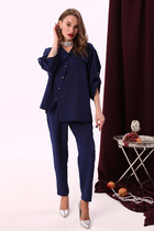 Комплект состоит из сарафана и жакета. В сарафане в боковом шве молния, а также молния по центру груди декоративная металлическая. Юбка сарафана из цветного шифона на подкладке. Жакет укороченный на пуговицах, рукав на манжете с застёжкой на пуговицу.