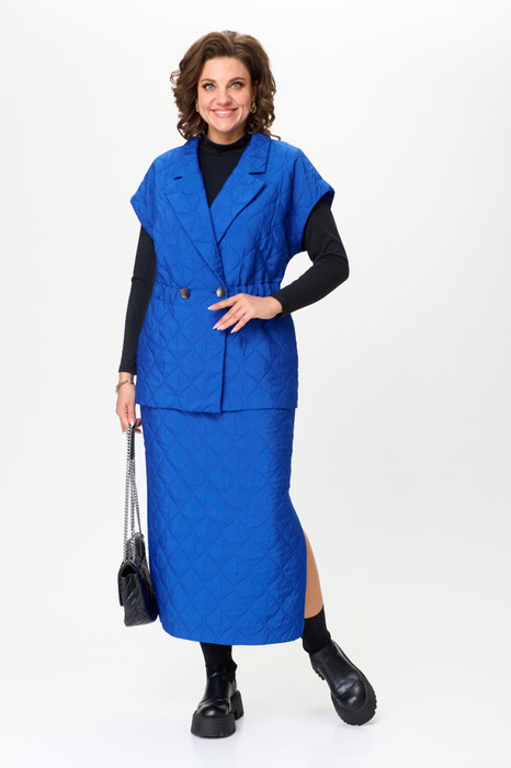 Бренд белорусской женской одежды больших размеров Anastasia представляет костюм  двойку. Костюм женский 2-х предметный (жилет, юбка) из стеганной  ткани станет отличным дополнением к Вашему гардеробу. Подойдет  для повседневной носки (работа, офис, прогулки). Достаточно дополнить его соответствующими предметами из вашего гардероба: блузка, майка, водолазка, гольф, свитер,  лонгслив, свитшот. Жилет  прямого силуэта, со спущенным плечом. Может быть самостоятельным элементом гордерба. Застежка двухбортная, воротник английского типа. По полочке идет грудовая выточка из бокового шва, по спинке средний шов, по талии кулиска-резинка, по бокам -карманы.  Юбка-макси, зауженная к низу, по бокам разрезы. Пояс отрезной на резинке. Благодаря своему крою и фасону костюм подчеркивает женственные формы и скрывает то, что должно быть незаметным.  Это повседневный вариант на каждый день для занятий в школе или для офиса, на работу или на прогулку. Наденьте его на деловую встречу, официальное мероприятие, школьное торжество. Модель подойдёт для образа в университет или колледж.  Этот предмет одежды подчеркнет вашу элегантность и сделает образ более женственным. Одежда для женщин больших размеров и не только, по отличным ценам и высокого качества - это Anastasia! Добавляете нас в любимые бренды и вы всегда будете в курсе всех акций и новинок! Новинка осень 2024! Хороших покупок от «Анастасия»Длина по спинке (48-52)-70см, (54-58)-71 см.  Длина юбки (48-58) - 88см.