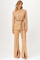 Оригинальный комплект от бренда Anastasia- идеальный выбор для любого случая. Этот комплект сочетает в себе элегантность и комфорт. Комплект женский 2-х предметный (жакет, брюки). Жакет прямого силуэта, на застежку петли и пуговицы. Воротник пиджачного типа, по полочке идут подрезы в шахматном порядке. Плечо спущенное, рукав 3/4 длины, с отложной манжетой которая фиксируется патой. Низ фигурный, спинка цветная. Брюки прямые, пояс на резинке, по бокам карманы. Комплект свободный, удобный. Длина спинки: (50-54)-73 см, (56-60)-76 см. Длина рукава:(50-54)-38 см, (56-60)-41 см. Длина брюк: (50-54)-101 см, (56-60)-105 см