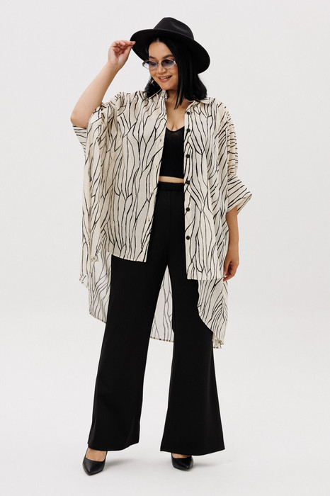 Стильный и изысканный женский комплект от бренда Anastasia,  состоящий из блузки и  брюк, идеальный для любого случая. Он станет отличным вариантом для торжественных мероприятий таких как: поход в ресторан, выставки, корпоратив. Этот комплект сочетает в себе элегантность и комфорт, что делает его подходящим как для деловых встреч или праздничныйх выходов.  Оригинальная женская блузка из хлопковой ткани типа поплина. Легкая и практически невесомая. Модель onesize.   Брюки -клеш, пояс на резинке. По внутреннему срезу по низу идут разрезы.  Отдельный части комплекта легко будут сочетаться с вещами из Вашего гардероба. Модель можно отнести к стилю кэжуал. Костюм можно носить с туфлями, кроссовками или ботинками. Обязательно добавьте наш бренд в избранное и следите за новинками, распродажами, скидками и акциями! Хороших покупок от «Анастасия». Длина блузки  (по спинке): 100 см.