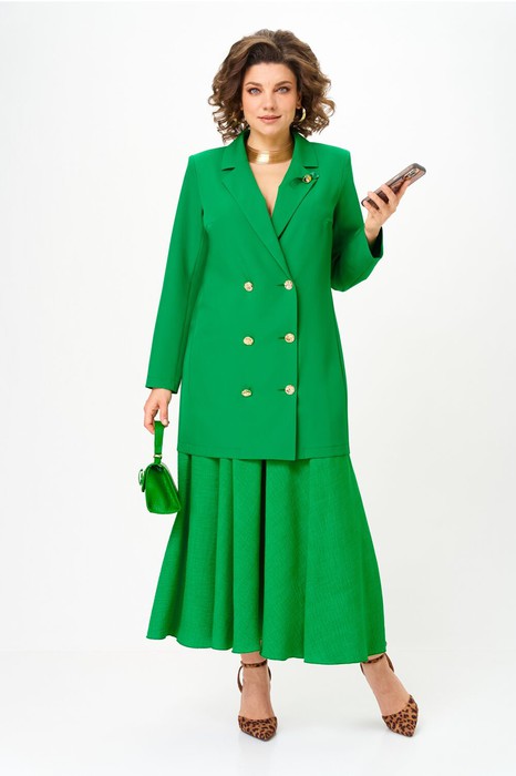 Женский деловой костюм с юбкой макси от Anastasia- для стильных и уверенных в себе женщин. Изготовленный из премиум ткани, этот комплект включает удлиненный пиджак и юбку. Костюм двойка позволяет создавать как нарядные образы для вечерних выходов, так и строгие луки для офиса. Пиджак имеет удивительный комфортный крой, который скроет все недостатки фигуры. Пуговки служат элементом, придающим модели оригинальность. Пиджак полуприлегающего силуэта. Застежка двубортная на петли и пуговицы. Воротник пиджачного типа. Приталивание создается за счет бочка по полочке и спинке. Рукав вточной, двух шовный. Великолепный фасон-юбка солнце длиной макси и резинкой на поясе обеспечивает идеальную посадку по фигуре, подчеркивая ваши достоинства и создавая элегантный силуэт. Сочетание оригинального модного дизайна и классического стиля делает этот костюм настоящей находкой для вашего гардероба. Части комплекта вы можете легко носить как самостоятельные изделия. Юбку леко сочетать с различными верхами: топ, блузка, футболка, кружевной жакет, свитер или жакет из тексиля- все это позволит создавать различные образы на разные случаи. Благодаря своей длине пиджак можно носить как платье, а также дополнять различные комплдекты из вашего гардеоба. Почувствуйте себя уверенно и элегантно нашем комплекте! Длина по синке (48-52)-83см , (54-62)-86 см. Длина рукава:(48-52)-60см, (54-58)-62см, (60-62)-63см. Длинна юбки 98см.