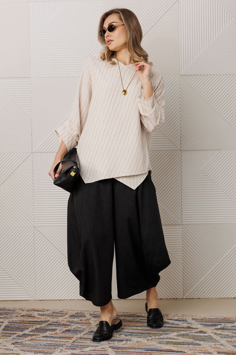 Состав: Блуза- Вискоза-44%; Лён-3%; ПЭ-45%; Хлопок-8%; Брюки- Лён-15%; ПЭ-75%; Хлопок-10%;