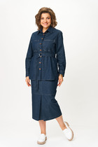 Костюм женский трех предметный, состоящий из жакета, жилета и юбки. Жакет полуприлегающего силуэта с центральной застежкой на петли и пуговицы, с пиджачным воротником, с втачными рукавами. Перед с нагрудными вытачками, отрезными бочками, прорезными карманами «в рамку» с клапаном и прорезным с листочкой. Спинка с отрезными бочками и средним швом. Рукава двухшовные со шлицей.