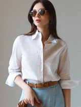 Блузка приталенного силуэта в полоску из эластичного хлопка