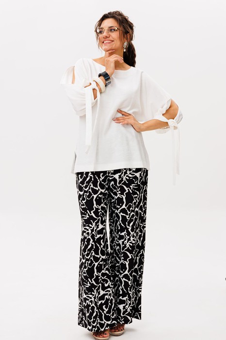 Этот костюм от Анелли — не просто одежда, а настроение. В нём ты чувствуешь себя уверенно и непринуждённо: на прогулке, в кафе или в путешествии. Блуза и брюки идеально гармонируют вместе, но каждая вещь настолько самодостаточна, что легко станет основой новых образов.