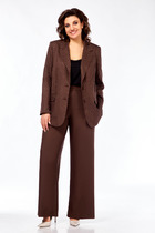 Этот роскошный костюм от Анелли воплощает в себе изысканность и утончённость, создавая образ, достойный самой элегантной женщины. Жакет с полуприлегающим силуэтом подчёркивает женственные линии, а изящные конструкторские решения в области плеча добавляют лёгкую драматичность. Рукав, выполненный из ажурного кружевного полотна, мягко ниспадает, создавая эффект воздушности и благородной нежности. Застёжка на пуговицы по всей длине придаёт строгость и завершённость силуэту, а кружевная баска добавляет ноту романтичности и изящества.