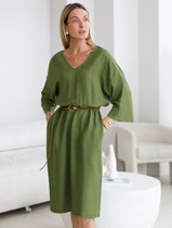 Платье с цельнокроеным рукавом изо льна с вискозой