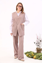Комплпект состоит из рубашки и брюк выполнен из черной ткани с контрастным белым принтом. Характеристики: рубашка прямой крой, отложной воротник, застежка центральная на петли пуговицы, в боковых швах разрезы, рукав свободного кроя - спущен, по низу рукава манжета, спинка отрезная с декоративной сборкой. Длина по спинке 66 см, длина рукава 81 см. Брюки прямого кроя, пояс брюк на резинке с кулиской, в боковых швах карманы. Длина 110 см.